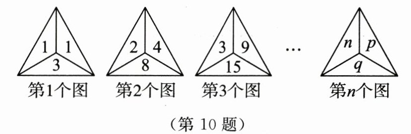 10. 如图,根据图中数字的规律,若第n个图中的$q= 143$,则p的值为(