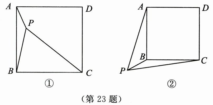 一节数学课上,老师提出了这样一个问题:如图①,P 是正方形 ABCD 内一点,PA= 1,PB= 2,PC= 3.你能求出∠APB 的度数吗?