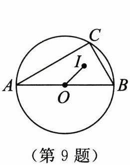 9. 如图,AB 是⊙O 的直径,AC,BC 是⊙O 的弦,I 是△ABC 的内心,连接 OI.若 $OI= \sqrt{2}$,∠BOI= 45°,则 BC 的长是(