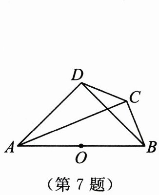 7. 如图,O 为线段 AB 的中点,点 B,C,D 到点 O 的距离相等,连接 AC,BD,则下列结论不一定成立的是(