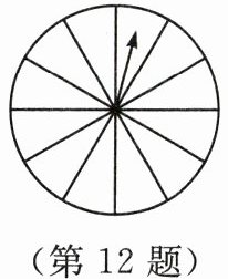 12. 如图,这是一个可以自由转动的质地均匀的转盘,被分成 12 个相同的小扇形.若把某些小扇形涂上红色,使转动的转盘停止时,指针指向红色的概率是 $\frac{1}{3}$,则涂上红色的小扇形有