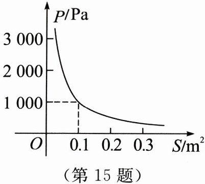 15. 在压力不变的情况下,某物体所受到的压强 P(单位:Pa)是它的受力面积 S(单位:$m^2$)的反比例函数,其图象如图所示.当$S = 0.2$时,该物体所受到的压强为