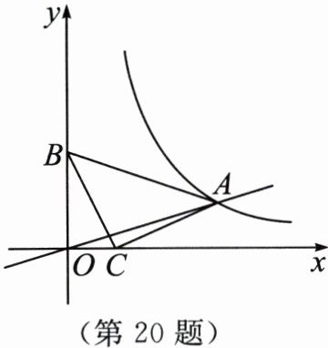 20. (本小题8分)如图,在Rt△ABC中,∠ACB= 90°,AC= BC,点C,B的坐标分别为C(2,0),B(0,4),反比例函数$y= \frac{k}{x}(x>0)$的图象经过点A.