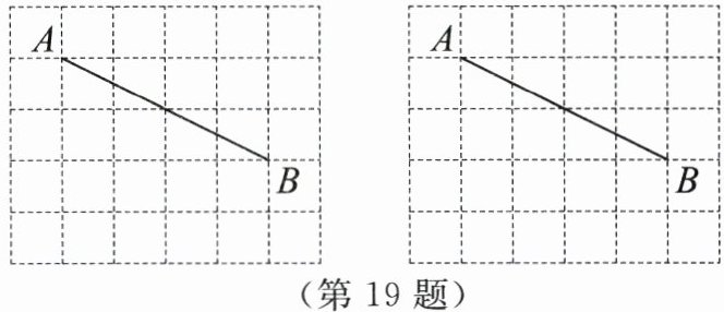19. (本小题8分)如图,在网格中,每个小正方形的边长均为1.线段AB的端点都是格点,请在图中作出它的一个三等分点M,要求:① 用两种不同的方法作图;② 作图工具仅限无刻度的直尺.