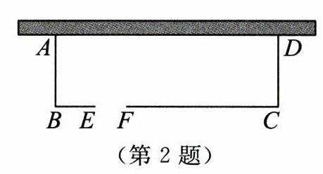 2. 如图,老李想用长为 70 m 的栅栏,再借助房屋的外墙(外墙足够长)围成一个矩形羊圈 ABCD,并在边 BC 上留一个 2 m 宽的门(建在 EF 处,另用其他材料).