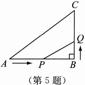 5. 如图,在△ABC中,∠B= 90°,AB= 8 cm,BC= 6 cm.已知点P从点A处出发,沿边AB向点B以2 cm/s的速度移动;点Q从点B处出发,沿边BC向点C以1 cm/s的速度移动.若点P,Q分别从点A,B同时出发,当△PBQ的面积最大时,运动时间为