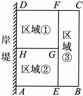 如图,为了节省材料,某水产养殖户利用水库的岸堤(岸堤足够长)为一边,用总长为80 m的围网在水库中围成了①②③三块矩形区域,而且这三块矩形区域的面积相等.设BC的长为x m,矩形区域ABCD的面积为$y m^2.$