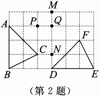 2. 如图,在网格中,每个小正方形的边长均为1,格点三角形 ABC(三个顶点都是小正方形顶点的三角形)经过旋转后得到格点三角形 DEF,则其旋转中心是(