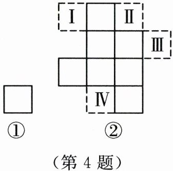4. 图①和图②中所有的小正方形都全等,将图①的小正方形放在图②中Ⅰ,Ⅱ,Ⅲ,Ⅳ的某一位置,使它与原来7个小正方形组成的图形是中心对称图形,这个位置是