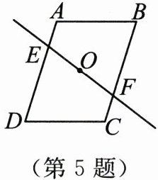 5. 如图,直线EF经过平行四边形ABCD的对称中心点O.若AE= 3 cm,四边形AEFB的面积为15 $ cm^2 $,则CF的长为