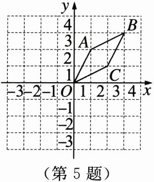 5. 如图,在平面直角坐标系中,已知菱形OABC的顶点A,B的坐标分别为A(1,2),B(3,3).作菱形OABC关于y轴的对称图形菱形OA'B'C',再作菱形OA'B'C'关于点O的中心对称图形菱形OA''B''C'',则点C''的坐标是 (