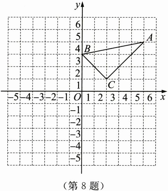 8. 如图,在平面直角坐标系中,△ABC的三个顶点的坐标分别为A(5,4),B(0,3),C(2,1).
