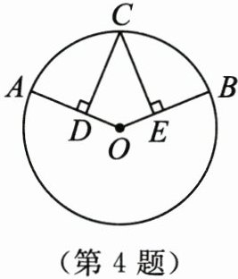 4. 如图,在$\odot O$中,$\widehat {AC}= \widehat {BC}$,$CD\perp OA$于点 D,$CE\perp OB$于点 E.求证:$CD= CE$.