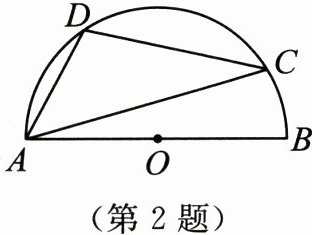 2. 如图,AB是半圆的直径,C,D是半圆上的两点,∠ADC= 106°,则∠CAB的度数为(