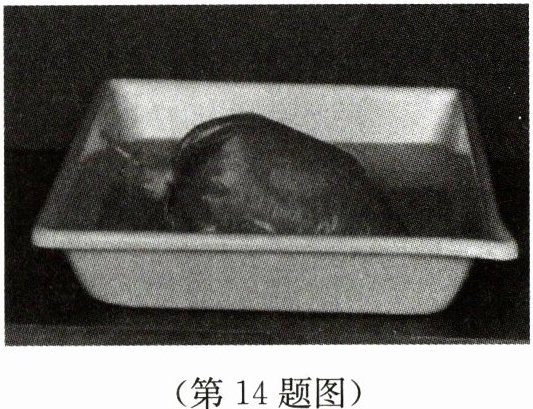 14. 如图所示,在塑料袋中滴入几滴酒精,将袋挤瘪,排出空气后把袋口扎紧,放入热水中,塑料袋鼓起,该过程中酒精发生的物态变化是