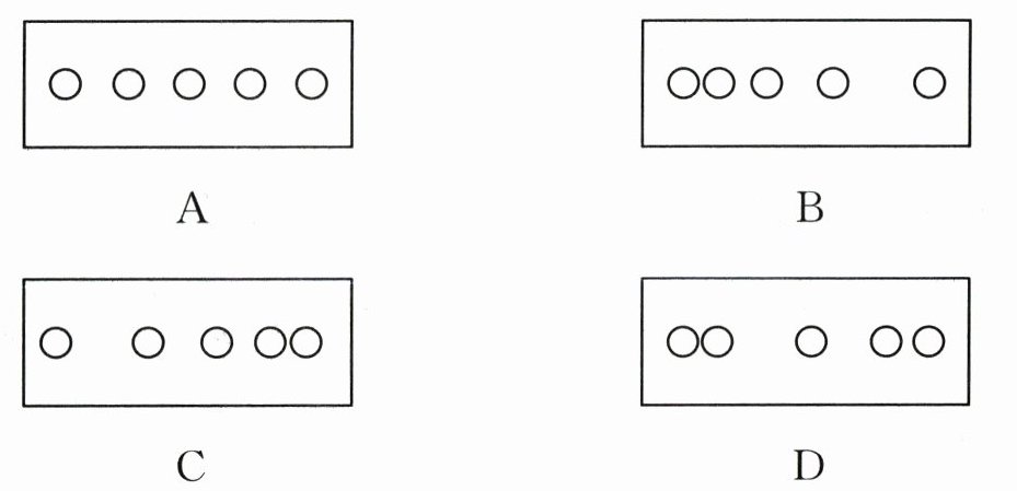 7. 小球从左向右运动,每隔相等时间曝光一次,所得到的照片如图所示,其中小球做匀速直线运动的是(
