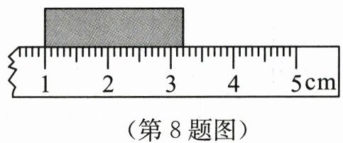 8. 如图所示,小明用一端磨损了的刻度尺测量橡皮的长度,被测橡皮的长度为(