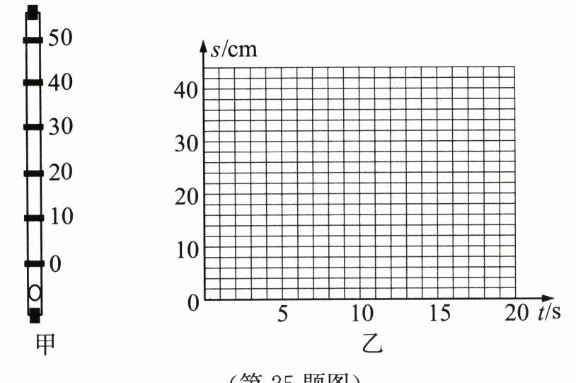25. (10分)在做“研究充水玻璃管中气泡的运动规律”实验时,小明取长50 cm的细玻璃管并注满水,管中留一个小气泡,将玻璃管反转后,观察气泡的运动情况,如图甲所示.