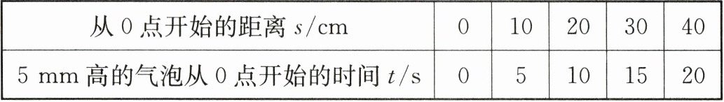 |2 cm高的气泡从0点开始的时间t/s|0|3.2|6.4|9.6|12.8|