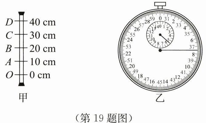 19. 小明做“探究气泡在充水玻璃管中运动规律”的实验前,设计了如图甲所示的实验装置.