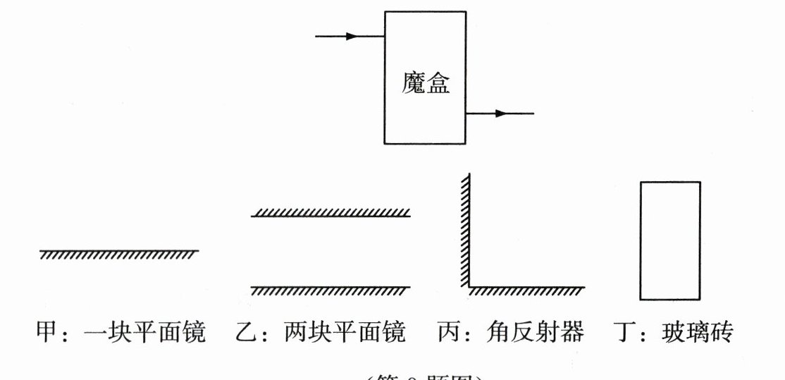 9. 如图所示,一束光入射到"魔盒"中的光学器件上,从"魔盒"的另一侧射出,出射光与入射光平行,则"魔盒"中的光学器件可能是(