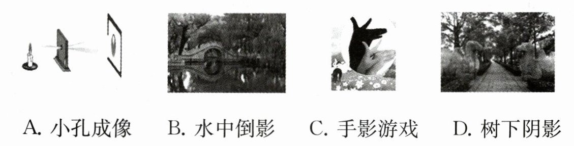 2. 下列光现象与日食的形成原因不同的是 (
