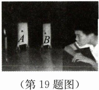 19. 如图所示,小明想通过A、B两张纸片上的小孔看见烛焰,他应将烛焰、两个小孔和人眼调到