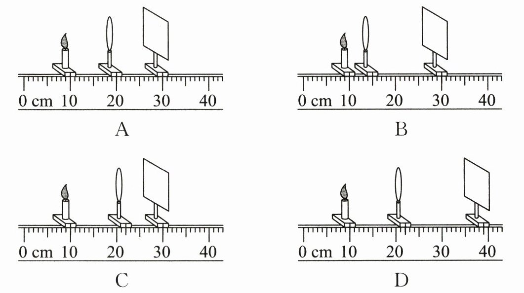 12. 如图所示是二维码扫描收银盒,它是一种影像式移动支付装置,其扫描摄像头为焦距等于5 cm的凸透镜,将二维码放置在扫码区则可生成倒立、缩小的实像.小明用凸透镜成像实验模拟收银盒成像规律,其中正确的是(