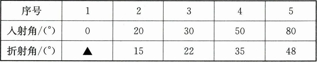 |序号|入射角/(°)|折射角/(°)|