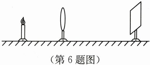 6. 如图所示,凸透镜焦距为f,烛焰在图示位置时恰能在光屏上成清晰的像.现将蜡烛沿主光轴向某一方向移动距离2f,同时沿同一方向移动光屏,使烛焰始终能在光屏上成清晰的像,则光屏上的像 (