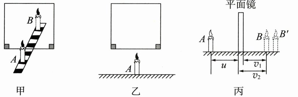 (选填"明亮"或"黑暗")的环境中进行.(2) 如图甲所示,将一支大小与蜡烛A相同的蜡烛B在玻璃板后面移动,可使B和A的像完全重合.该过程主要采用的研究方法是
