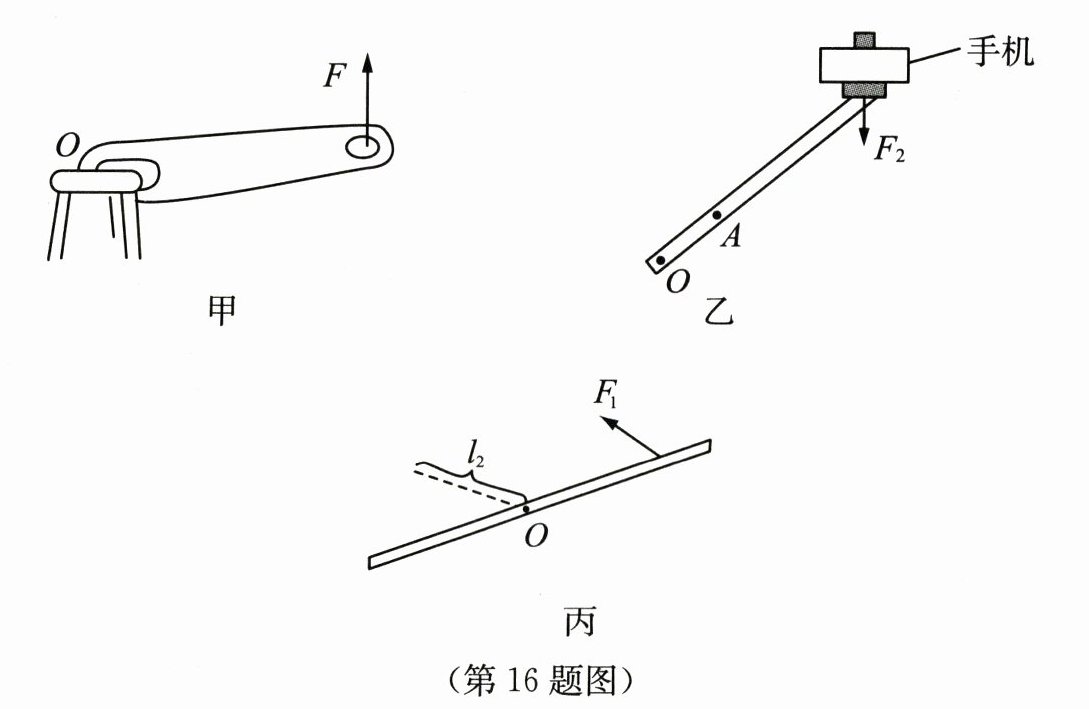 16. (6分)(1) 在图甲中,画出力F的力臂(图中O点为支点).