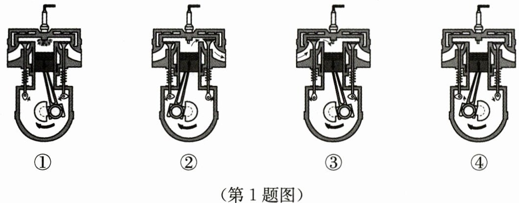 1. 如图所示为单缸四冲程汽油机工作时各冲程的示意图,该汽油机完成一个工作循环的四个冲程正确的顺序是(