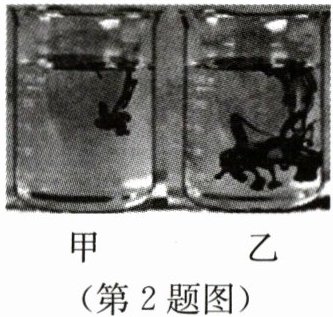 2. 在质量相同的两杯水中各滴入一滴红墨水,一段时间后如图所示.下列说法正确的是(