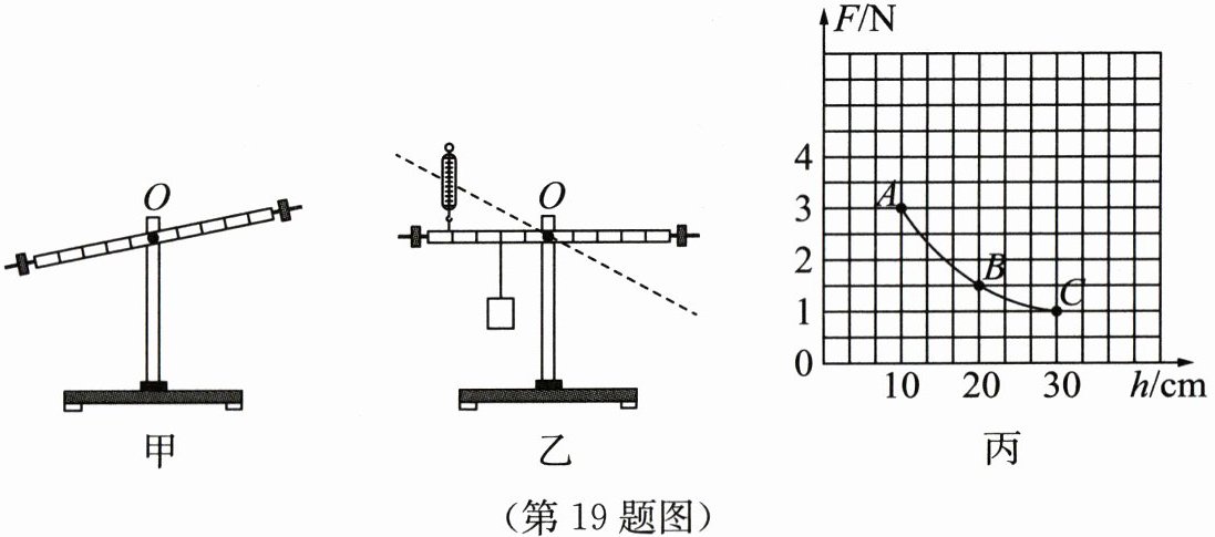 (2)如图乙所示,小明用弹簧测力计竖直向上将2 N的重物缓慢匀速提升15 cm至虚线位置,测出弹簧测力计拉力F和弹簧测力计提升的高度h.通过改变弹簧测力计拉在杠杆上的位置重复上述步骤,记录数据,作出F-h图线如图丙所示.分析图像可知: