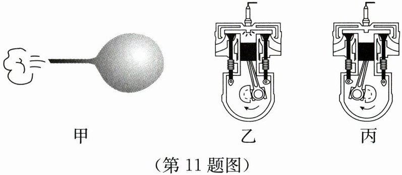 11. 在吹气球时,吹大了的气球没握住,它呼啸着飞跑了!在此过程中: