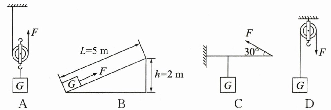 7. 用如图所示的四种简单机械,将同一重物从低处匀速提升到高处,在不计机械自重及摩擦的情况下,最省力的是(