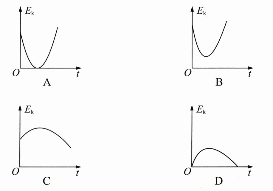 10. 在排球比赛中,小明把排球竖直向上抛出,排球在运动中动能$E_{k}$随时间t变化的图像最接近的是(