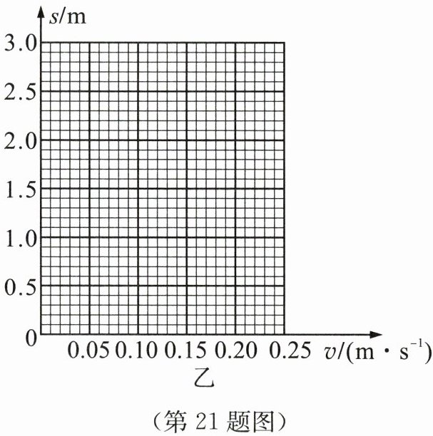 (2)从表格中选择数据,在图乙中描点画出小车在水平面的滑行距离与初速度之间的关系图像.由实验数据可知,小车滑行距离s与初速度v的关系式为