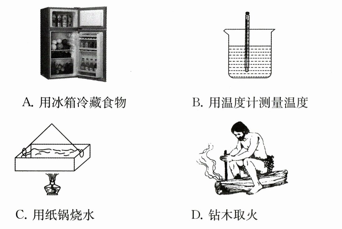 2. 下列四个过程中,食物、温度计、水、木头的内能都会发生改变,其中改变物体内能的方法与其他三个不同的是(