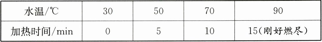 |加热时间/min|0|5|10|15(刚好燃尽)|