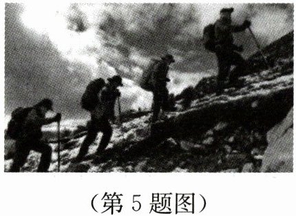 5. 我国登山爱好者组成的科研队伍成功登顶珠穆朗玛峰,并传回了来自世界之巅的超声影像图.如图所示为他们登顶的过程,体重(含装备)越大的队员一定(