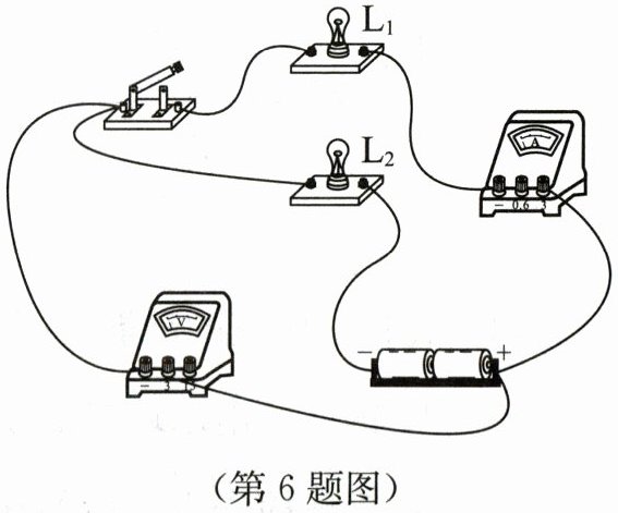 6. 如图所示的电路中,当开关闭合时,灯$L_1、$$L_2$都不亮,电流表无示数,但电压表的示数较大,则故障原因可能是(