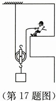 17. (7分)如图所示,工人用动滑轮匀速提升重为400 N的窗玻璃,所用的竖直拉力为250 N,窗玻璃上升的高度为10 m,用时50 s.求: