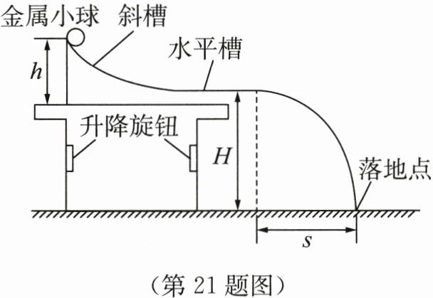 21. (8分)小明在玩水枪玩具时,发现当水枪水平放置时,推动活塞的速度越快,水枪离地面的高度越高,水就会射得越远.“空中水平抛出物体的落地水平距离与哪些因素有关呢?”他突然产生一个疑问,并对其提出了如下猜想: