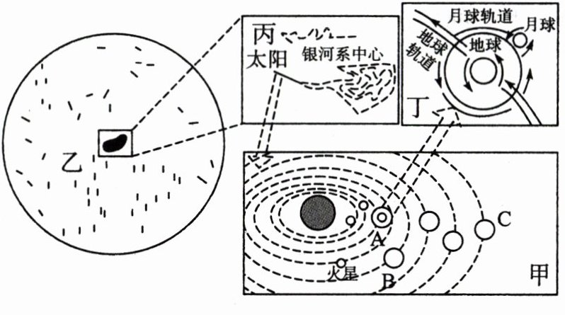 。(3) 比图丁所示天体系统高一级的天体系统的中心天体是
