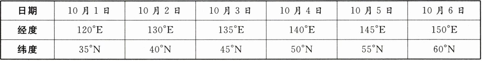 30. 一艘军舰从 10 月 1 日至 10 月 6 日所处的经纬度如下表所示,请根据给出的军舰位置画出这艘军舰的航线。(10 分)