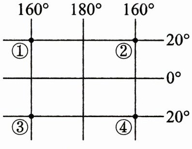 某国海上救援船位于$(0^{\circ},180^{\circ})$的洋面上,现在收到一艘远洋捕捞船的求救信号,得知轮船遇险地点在$(20^{\circ}S,160^{\circ}W)$。读下图,回答 12~13 题。