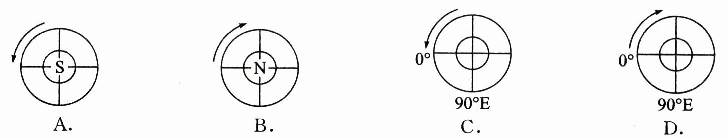 16. 下列四幅图中,能正确表示地球自转方向的是(