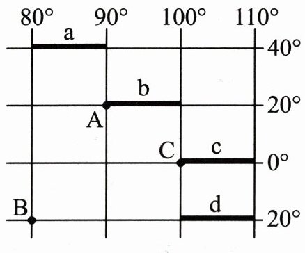 (5) 图中 a、b、c、d 四段中符合东半球、北半球、低纬度的是